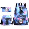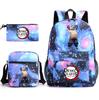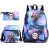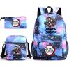 3Pcs/set Anime Demon Slayer Printed Backpack with Shoulder Bag Pencil Case for Teenager Student Boy Girl Large Capacity Waterproof Schoolbag