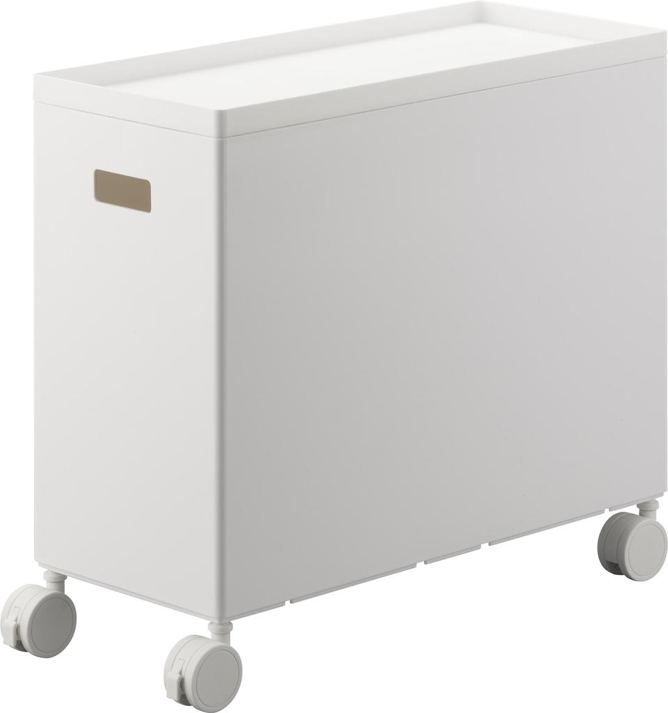 Yamazaki Tower Storage Box with X D35 X Storage 4556 Lid, Large, White, W15.5 H31.7cm (including Casters), Caster-equipped Wagon, Space-Saving,
