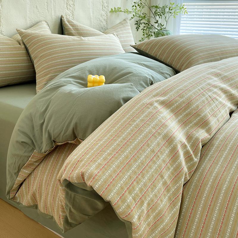 G5Z Cotton Yarn-Dyed Stripe Duvet Cover Set - 4 Pieces, All-Season Bedding for Dorms