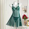 Multi-Color Bow Wheat Ear Embroidered Deep V See-Through Lingerie Set with T-Back