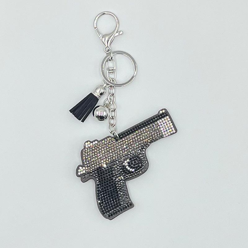 Fashion Rhinestone Gun Keychain with Tassel Pendant - Trendy Bag Accessory