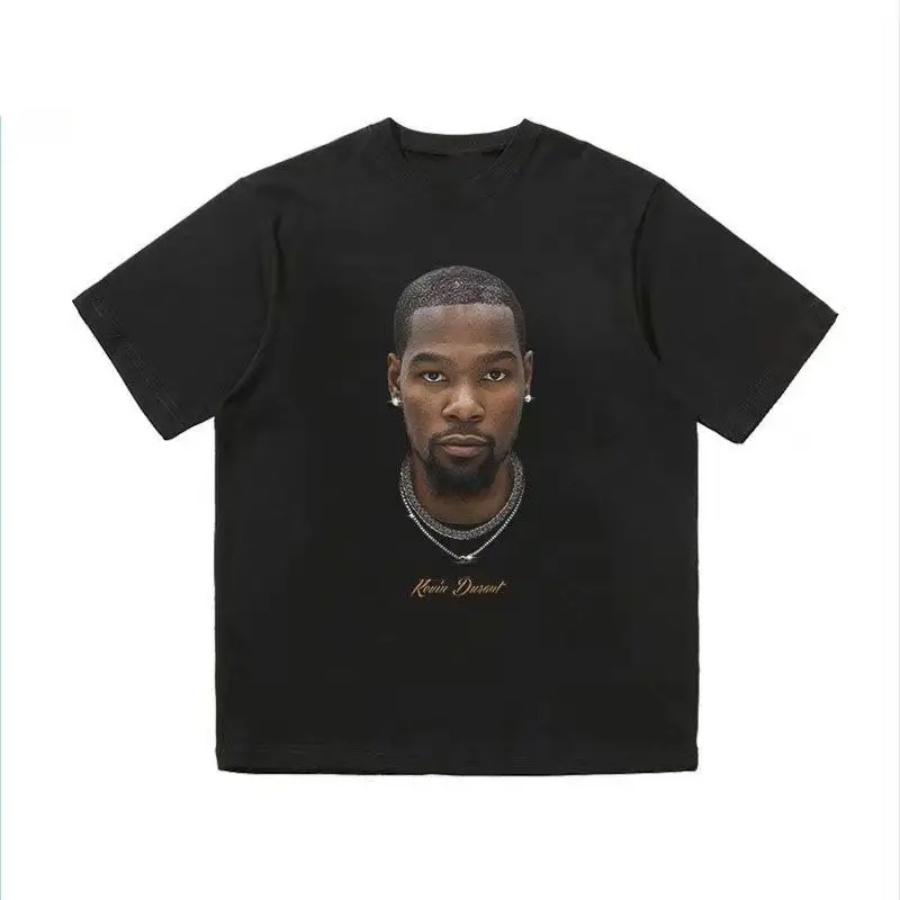 100% Cotton American NBA Star T-shirt Durant Big Head Print Short Sleeve Basketball Trendy Brand Summer Men and Women