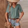 V-neck Women's Summer New Style T-shirt with Lace Patchwork Design