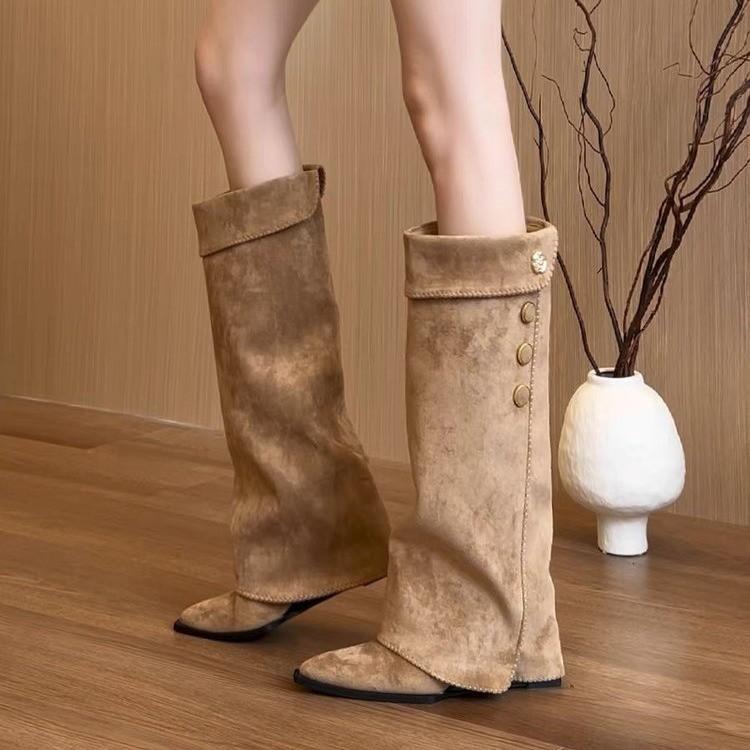 Fashion Boots Women's Shoes Rubber Thick Heel Winter Sleeve Suede Tall Microfiber Fashion Boots