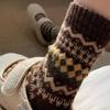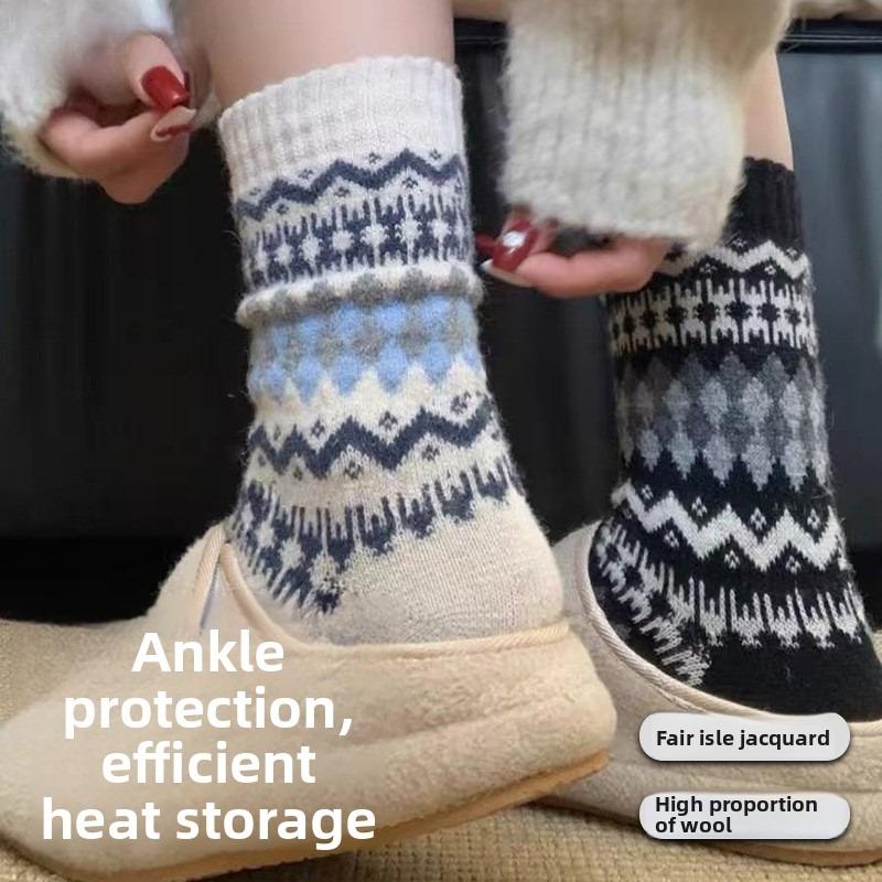 Fell Island Wool Socks for Children In Autumn and Winter - Thick and Warm Traditional Ethnic Style Mid-Calf Socks - Retro Snowflake Plush Socks