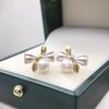 Bowknot Baked Paint Color Block Freshwater Pearl Stud Earrings