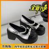 Round-headed Woman Elegant Thick-soled Wind Gentle Small Leather Shoes Bow Mary Jane Shoes Pearl Fairy