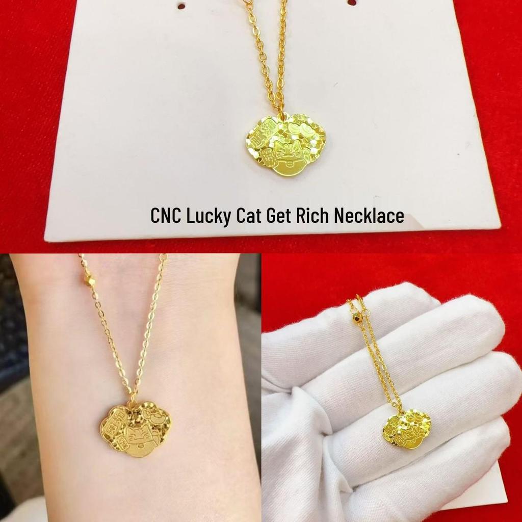 Golden Lucky Cat Fan-shaped Lotus Pendant Necklace for Women