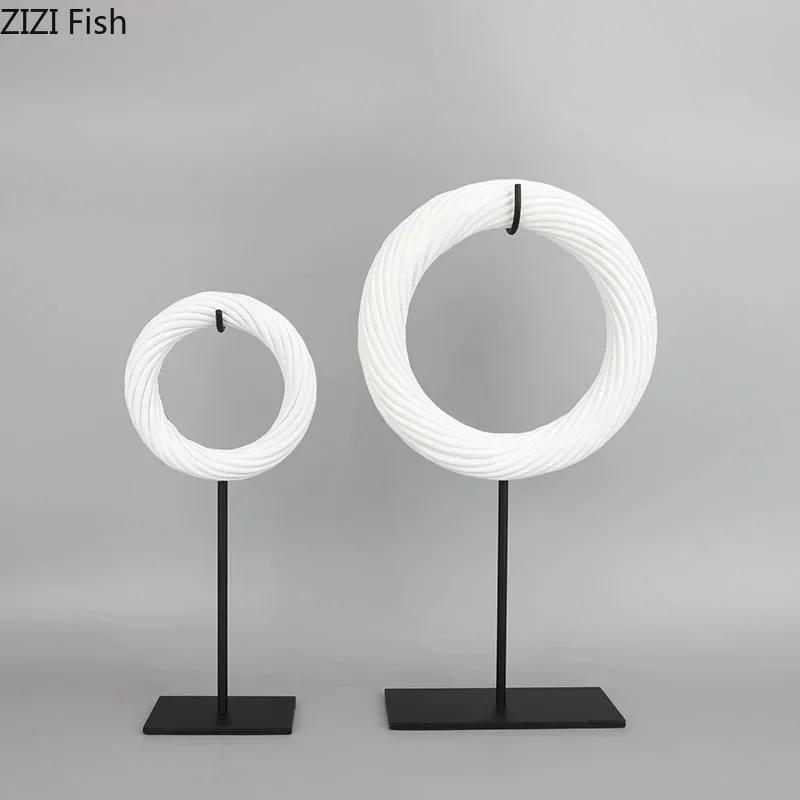 Creative Twisting Rope Circular Ring Geometric Statue Desk Decoration White Circle Sculpture Ornaments Room Aesthetic Decor