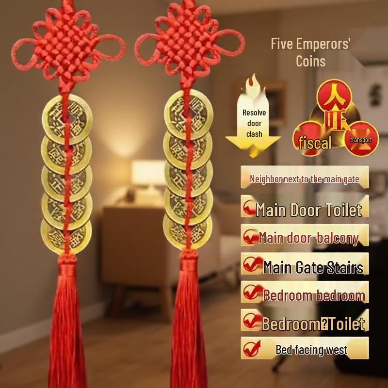 Five Emperors Copper Coins Door Hanging Ornament - Pure Brass Chinese Knot for Main Entrance