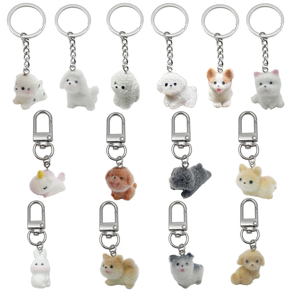 Resin Cartoon Animal Keychain: Puppy, Bichon, Border Collie, Teddy, Rabbit