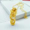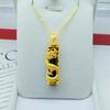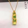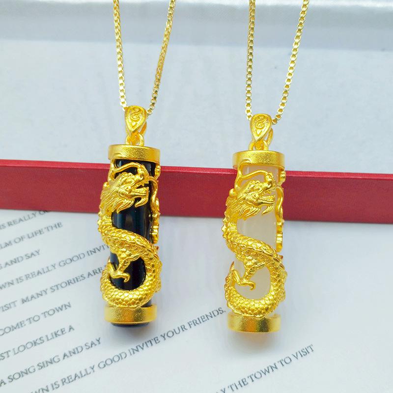 Gilded Brass Dragon Pillar Pendant with Imitation Gold Chalcedony and White Jade Necklace