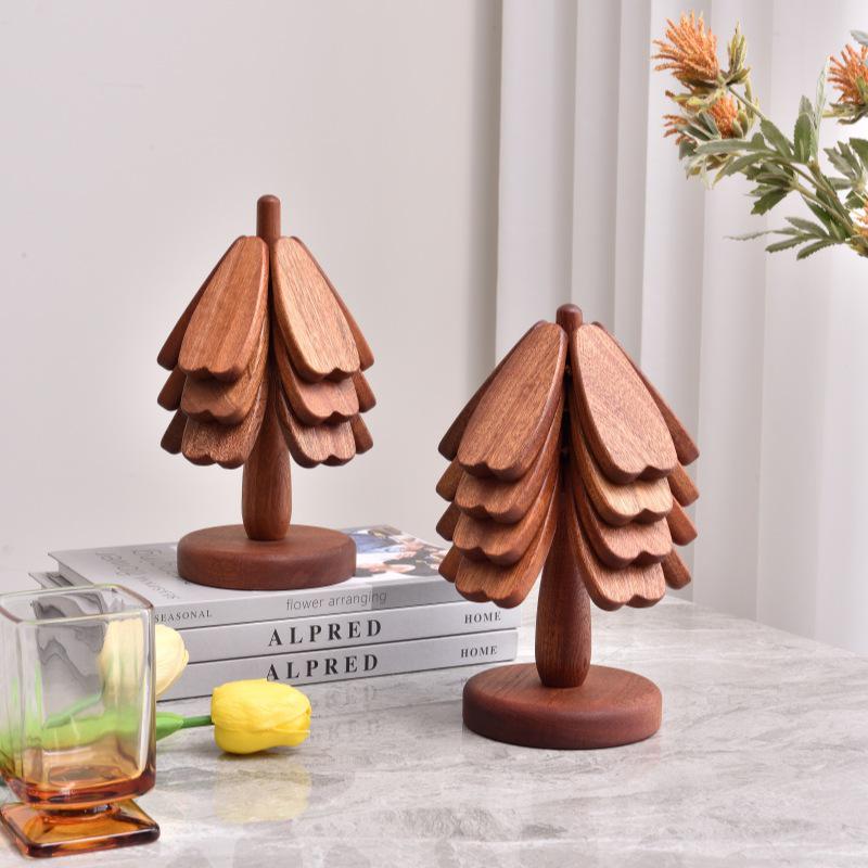 High-End Solid Wood Christmas Tree Table Mat - Heat Resistant Pot and Dish Pad, Decorative Ornament