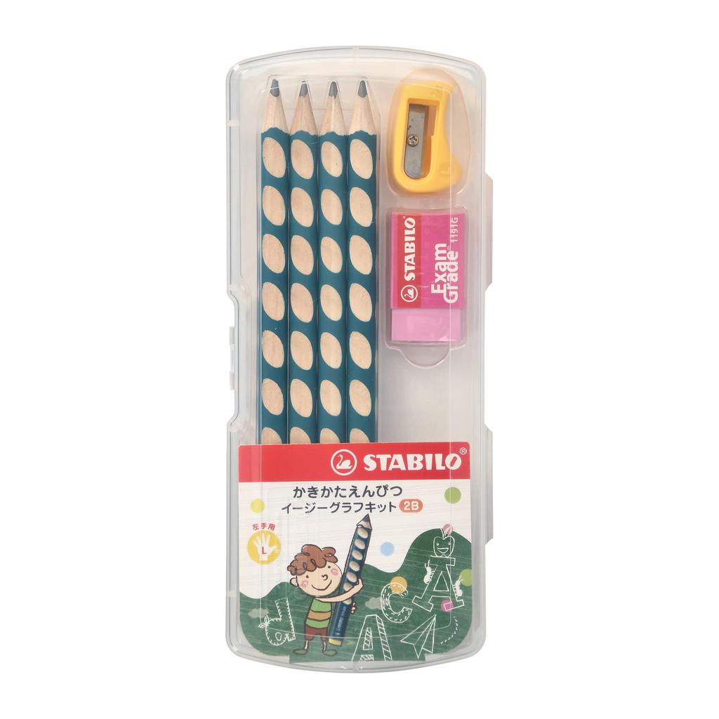 STABILO EasyGraph Learning Pencil Starter 2B for Triangular Corrective Personalized 4 for Boys and Girls Set, Petrol, Left-Handed Children, Grip,