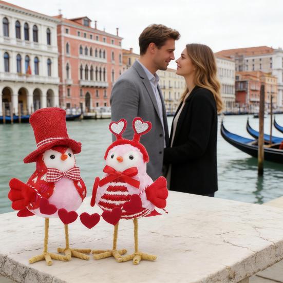 Designed as a romantic couple set, one bird sports a gentleman's hat and bow tie while the other wears a love hair accessory and bow, ideal for adding a sweet ambiance to your home or special occasions like Valentine's Day and anniversaries. Its round body and innocent eyes offer a healing, cute appeal that relieves stress or makes a thoughtful gift. Versatile as daily decor, party table accents, souvenirs, or photo props, this figurine brings warmth and joy to any setting.