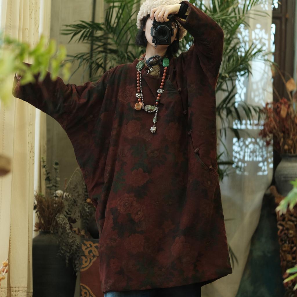 Johnature Women Print Floral Parkas Winter Vintage Coats Warm Long Sleeve Chinese Style Button Female Coats
