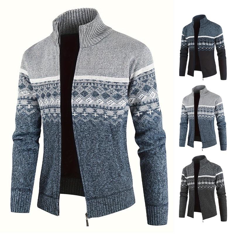 This stylish cardigan sweater for men features a high neck and plush knit design, perfect for the winter season. Offering a slim fit, it has a stand neckline and long sleeves, ensuring both warmth and sophistication. Crafted from high-quality polyester material with a chemical fiber blended fur, it provides a standard thickness for optimal comfort and durability. Ideal for layering, it combines fashion and practicality for a modern wardrobe essential.