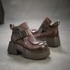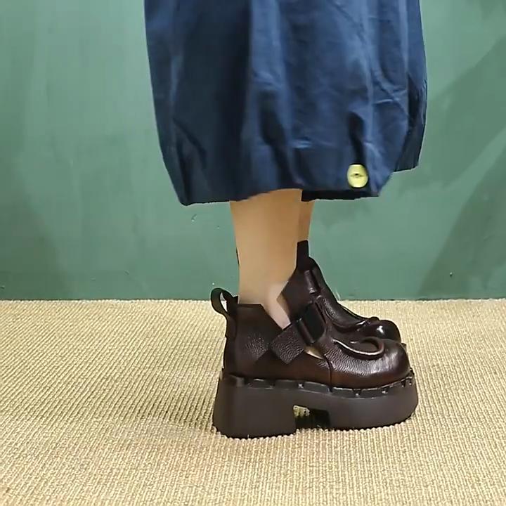 Johnature Commuter Retro Thick Soled High Heels Pumps Versatile Genuine Leather Women's Platform Shoes