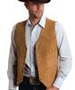 This men's vest combines a vintage aesthetic with a modern, slim fit to create a stylish business look. Crafted from medium-thickness suede, the vest features a sophisticated tailor neckline and a button closure, providing a classic and refined appearance. The metal buckle detail adds a touch of elegance to its timeless design. Made with a blend of suede and polyester materials, this vest is perfect for those seeking to incorporate a touch of vintage charm into a contemporary wardrobe.