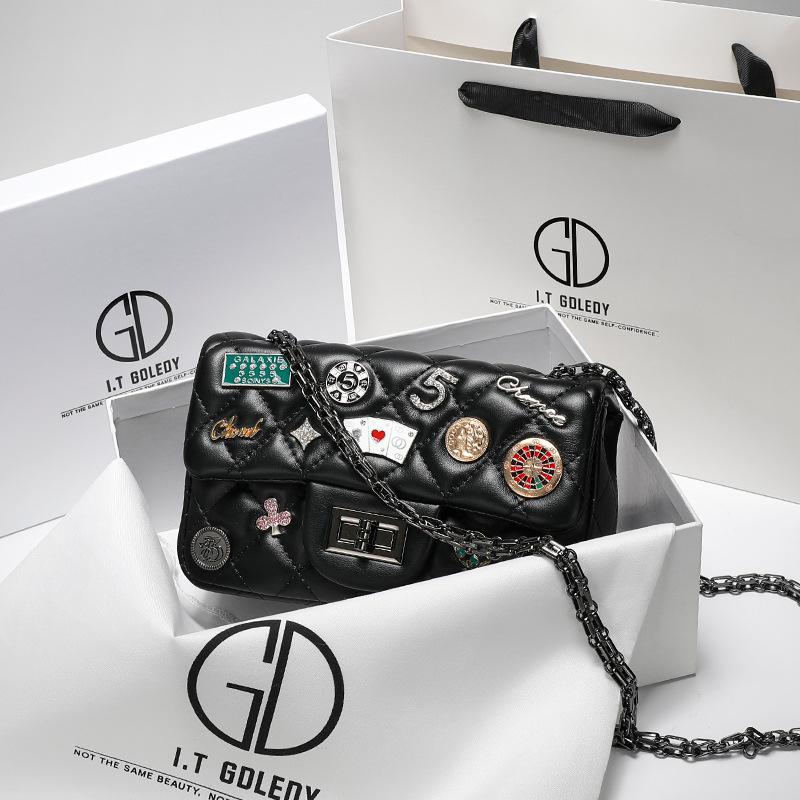 Hong Kong ITGDLEDY Genuine Leather Luxury Brand Medallion Chain Small Bag New Single Shoulder Crossbody Bag for Women