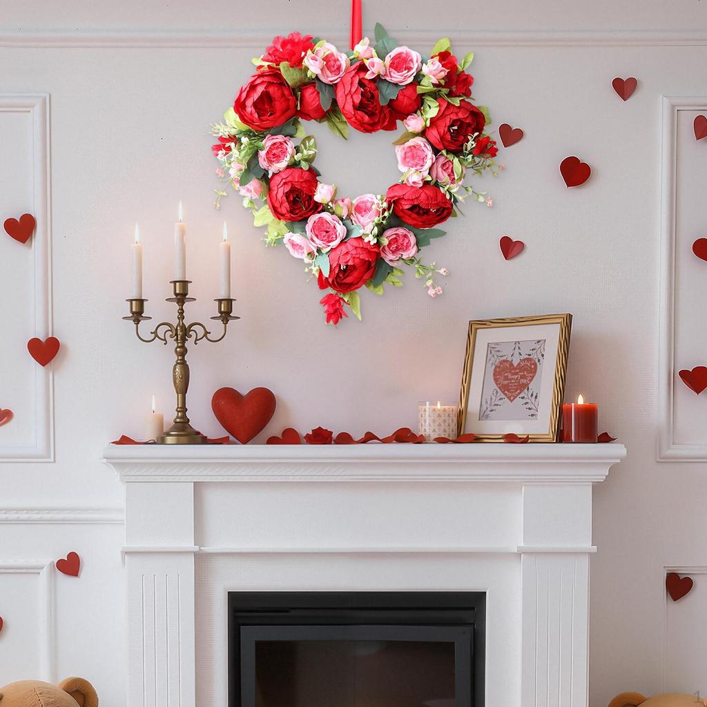 Heart Shaped Wreath Romantic Garland Rustic Hanging Decoration Decorative Artificial Flowers for