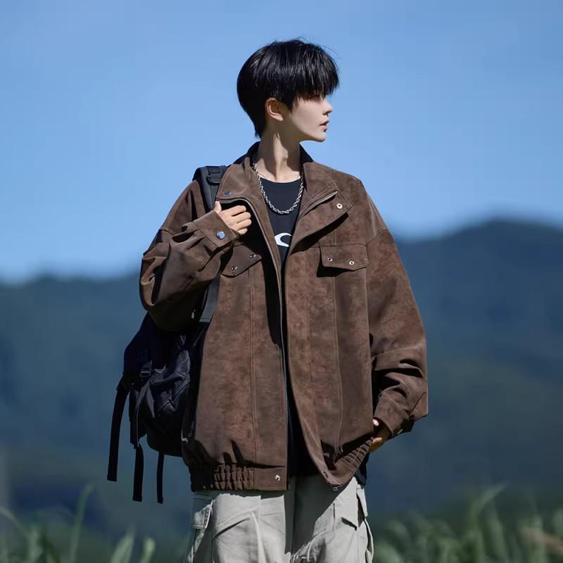 Men's Trendy Tie-Dye Leather Jacket, Autumn/Winter 2025, Lapel Motorcycle Outerwear, New Loose Workwear Style.