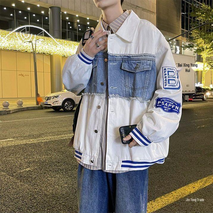 Men's Retro Patchwork Denim Jacket - Thickened Winter Shearling Lining, Versatile Trendy Ins Hipster Style