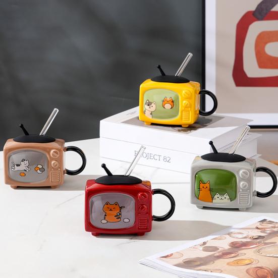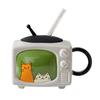 Charming Retro TV Aesthetic: Inspired by classic old-fashioned televisions, the cup's unique shape is complemented by an adorable “screen” featuring soft cat and puppy illustrations. This blend of retro style and cute pet imagery makes it both a functional drinking vessel and a delightful decorative piece for any desk or kitchen.