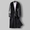 Introducing a stylish and comfortable trench coat designed specifically for plus-size men. This long faux leather coat is enhanced with a luxurious fur lining, offering both warmth and sophistication. The coat features a tailor neckline, adding a touch of elegance to its overall design. Perfect for making a fashion statement while keeping cozy in cooler weather.