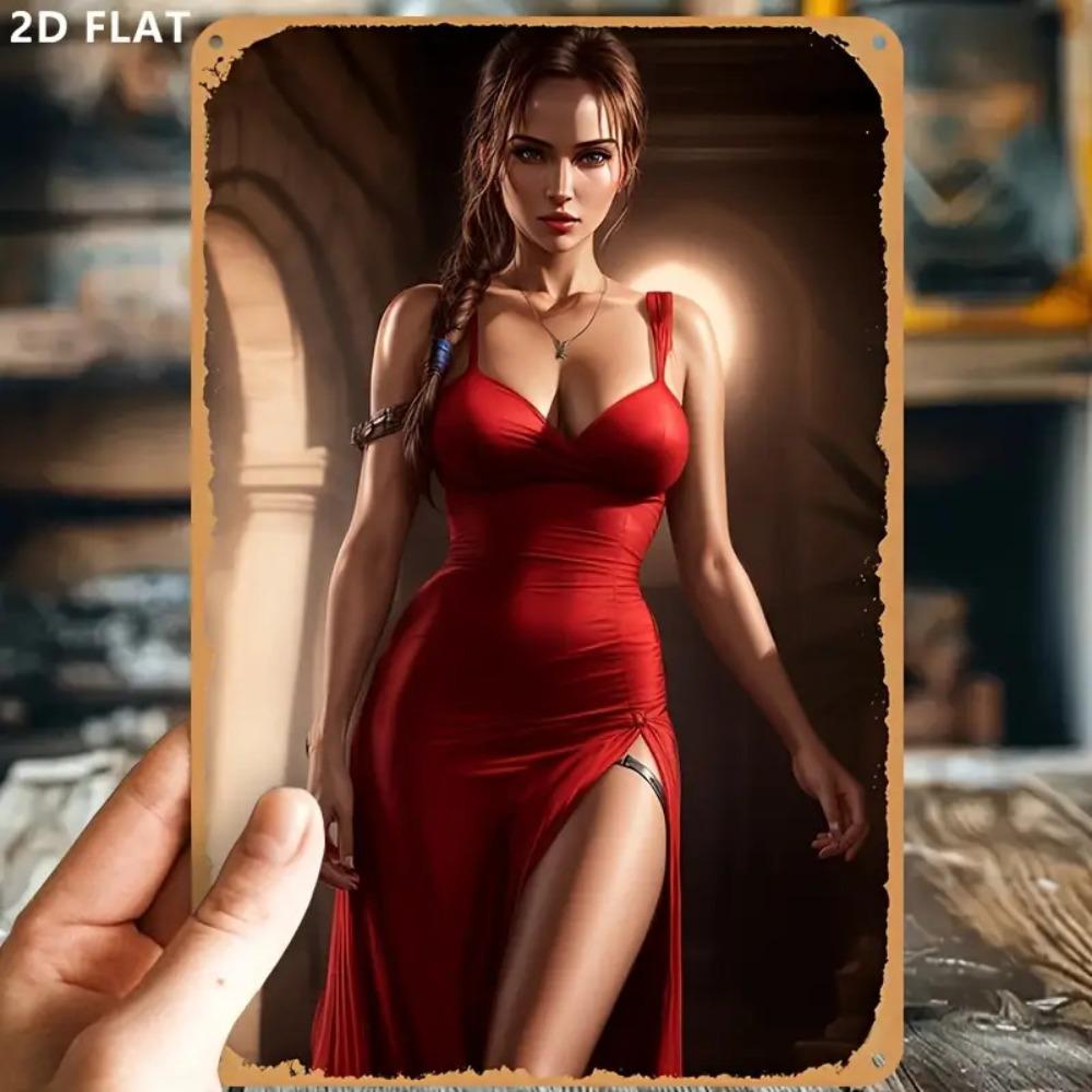 Vintage Red Metal Wall Art for Women 2D Floral Aluminum Sign 8x12 Inch Waterproof Home Decor for Living Room Bedroom Cafe