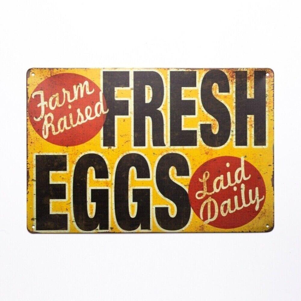 Tin Sign Fresh Eggs Laid Daily Rooster Chicken Decor Farm Barn Dairy Kitchen