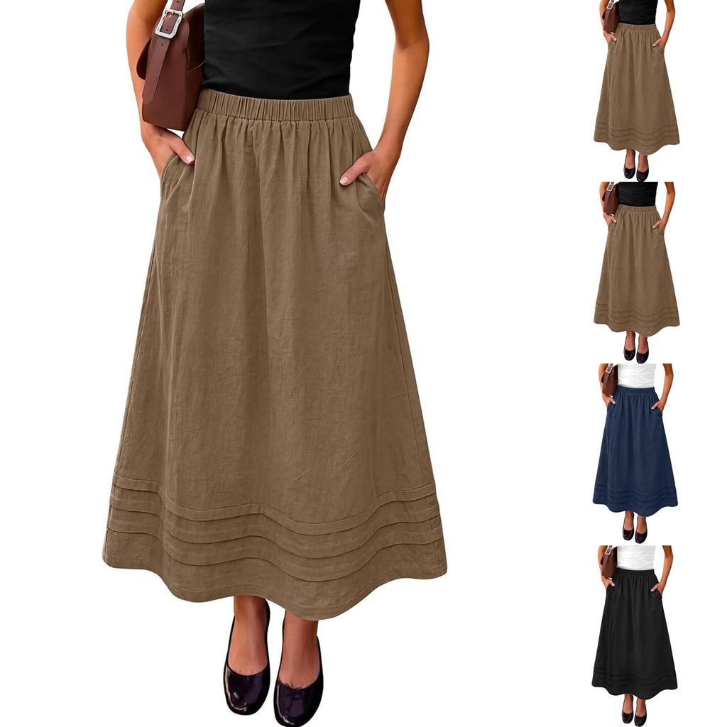 Women's Summer Casual High-Waisted Bell-Sleeve Skirt with Pockets