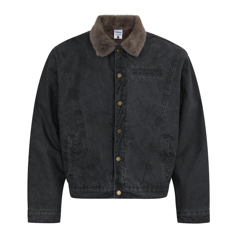 Men's Vintage Cotton Patchwork Jacket - Trendy Retro Lapel Coat for Boys