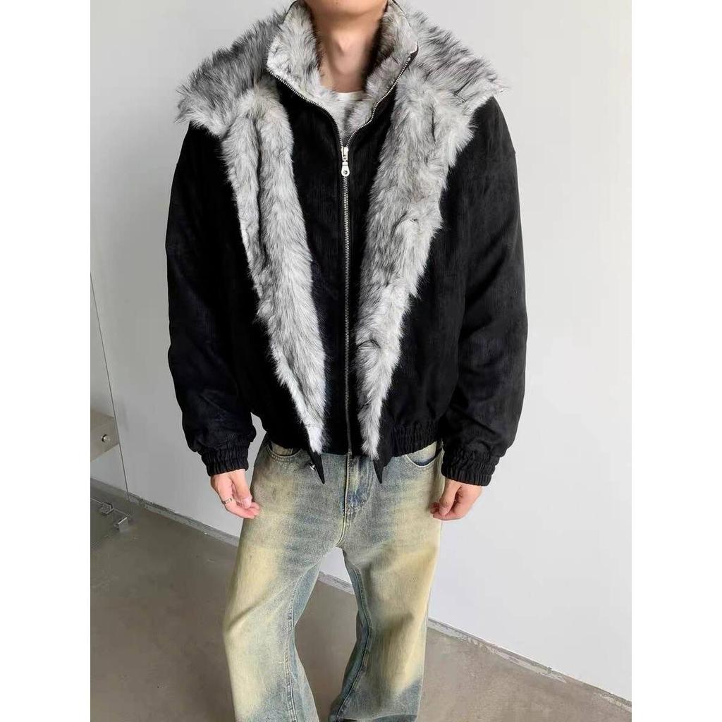 American Retro Mountain Eagle Cotton Jacket with Fur Collar - Unisex