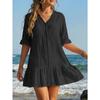Women's Beach Cover-up V-neck Ruffled Button-down Casual Resort Dress