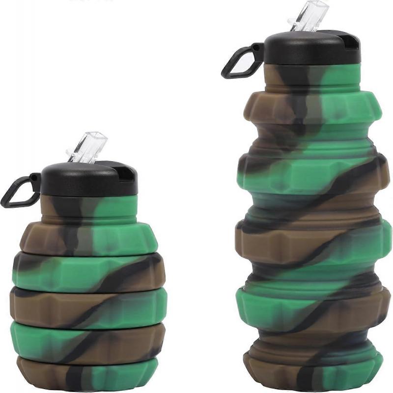 COLLAPSIBLE CAMO CUP: Enjoy your favourite drink anytime, anywhere, with this foldable camouflage coffee cup; The full reusable bottle measures W7 x H21.5cm (3 x 8.5 inches) and can hold up to 500ml (17oz); The height can be adjusted into 5 different positions