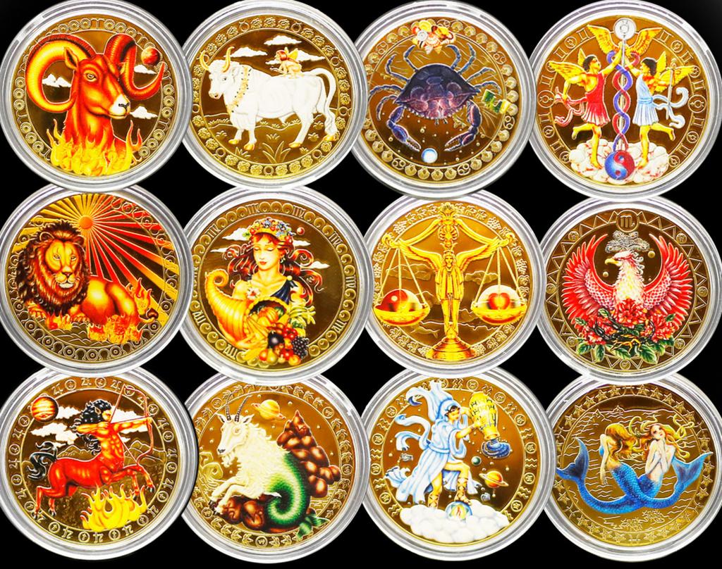 12 Signs Commemorative Medals Gold-Tone 12 Signs Collectible Wishing Commemorative