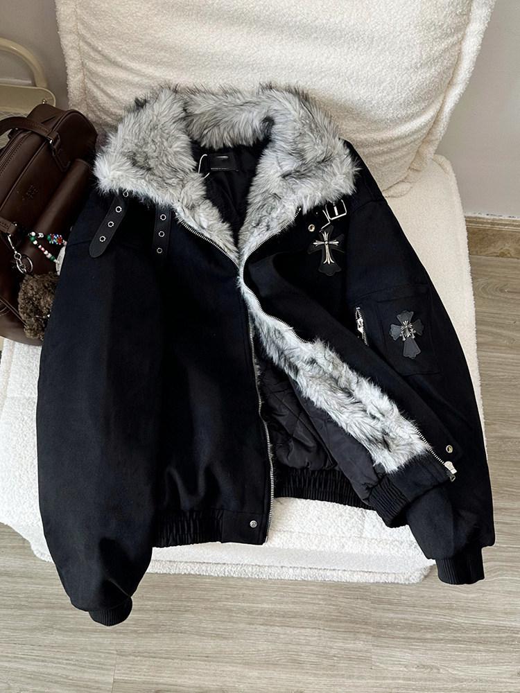 Men's Trendy American High Street Feather Collar Snow Eagle Cotton Jacket