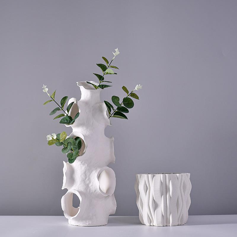 Ceramic Crafts Flower Vase Stereoscopic Embracing Stripes Flower Arrangement Accessories Home Decoration Accessories