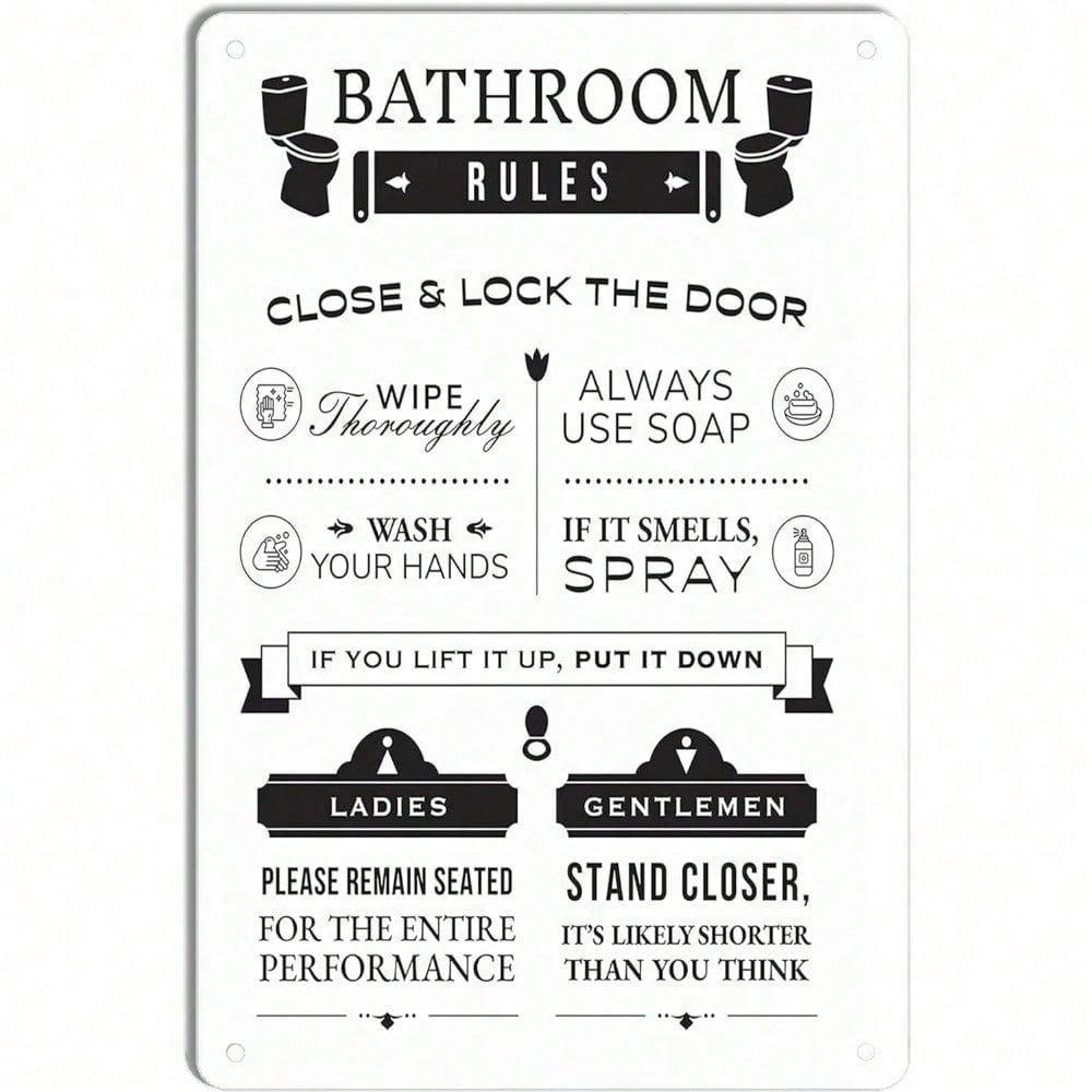 Retro Metal Bathroom Sign Vintage Wall Decor 8x12 Inch Rustic Tin PreDrilled Pub Cafe Home Funny Man Cave Art
