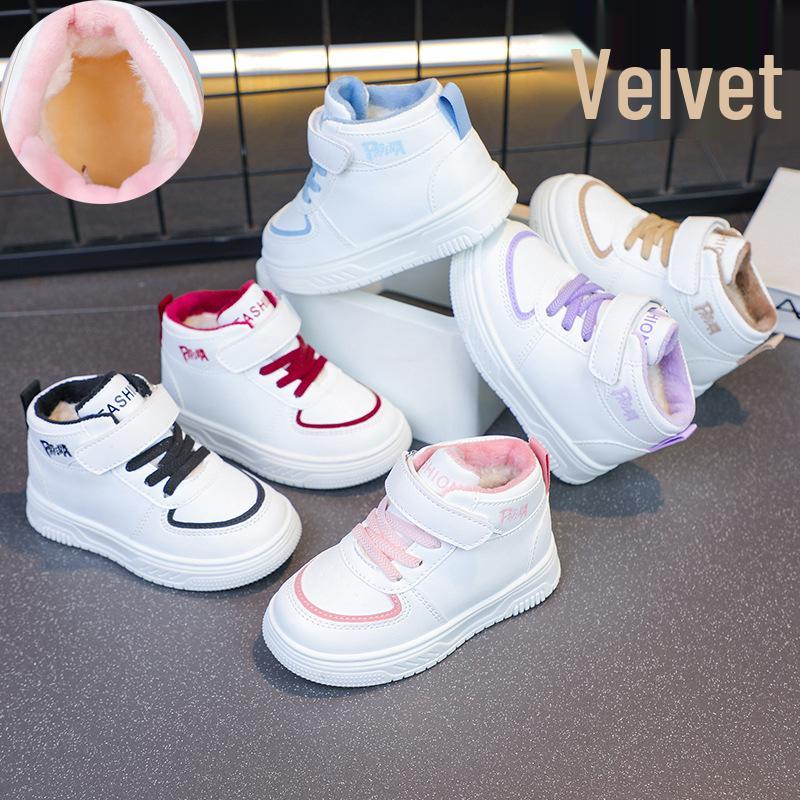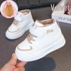 Children's White High-Top Canvas Shoes with Fleece Lining for Warmth - Versatile Sports Shoes for Boys and Toddler Girls