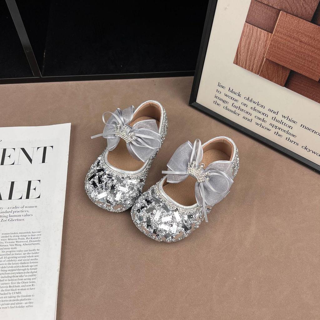 These charming shoes are designed for little girls, perfect for the 2026 spring and autumn seasons. Featuring a beautiful sequin bow, these flats add a touch of sparkle to any outfit. The non-slip rubber sole ensures safety and stability, while the thin sole design provides comfort for everyday wear. Ideal for both casual and special occasions, these shoes are a delightful addition to any young girl's wardrobe.