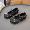 Girls' Black Soft-Soled Leather Mary Janes with Pearls - New 2026 Spring/Autumn Ballet Performance & Casual Shoes
