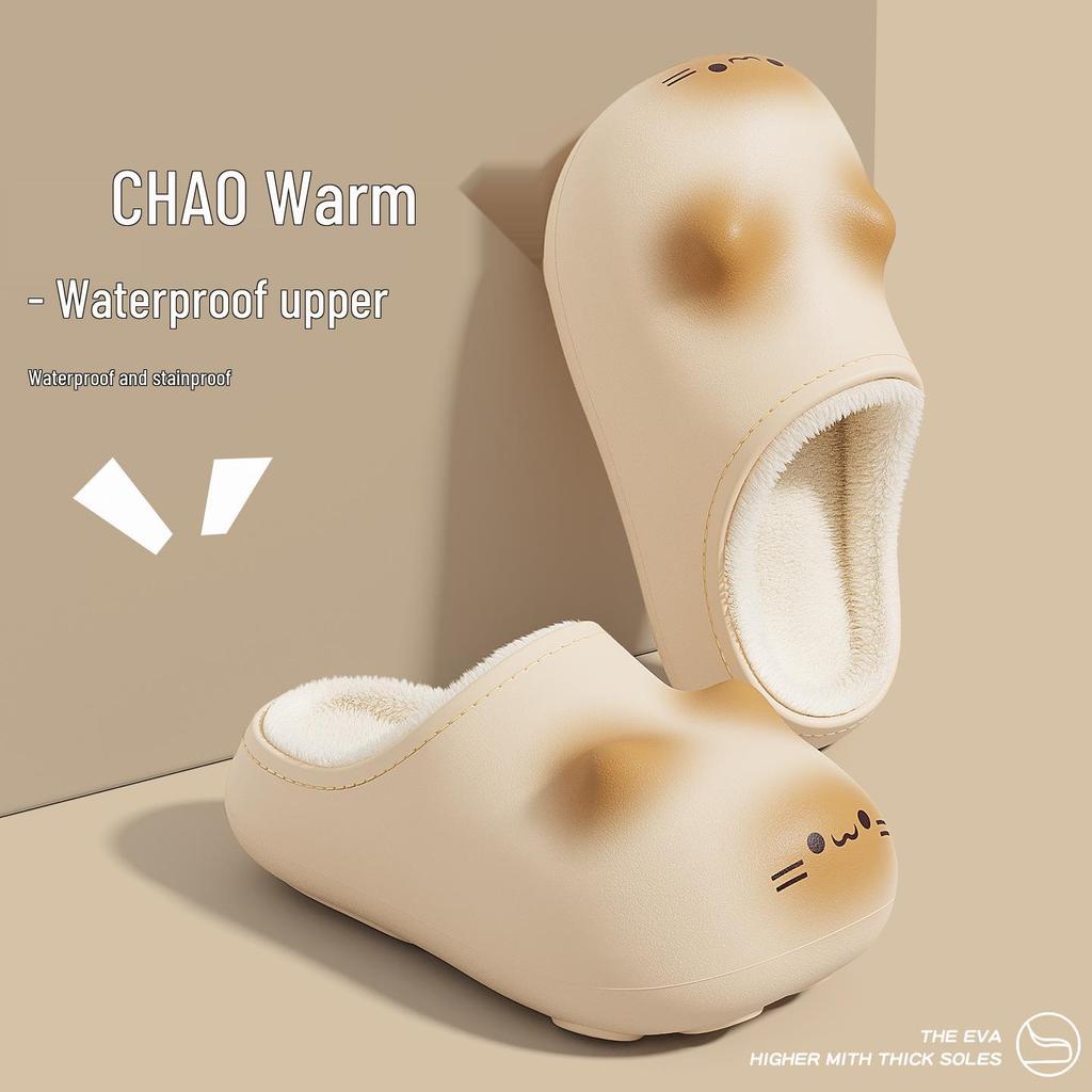 Xieluo Parent-Child Winter 2025 Cat Cartoon Slippers - Warm, Waterproof, Non-Slip Cotton Slippers