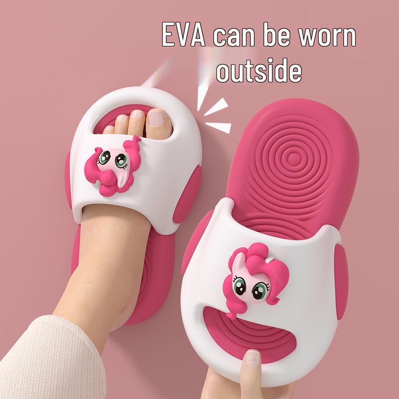 Introduce a delightful blend of comfort and fun with these vibrant, non-slip summer slippers, perfect for the young My Little Pony fans. Designed with a charming Pinkie Pie cartoon print, these indoor shoes will enchant children with their whimsical appeal. Crafted specifically for girls, the slippers feature a durable EVA sole that provides a secure grip, ensuring every step is stable and comfortable. Ideal for parent-child matching moments, these slippers bring a playful touch to any indoor adventure.