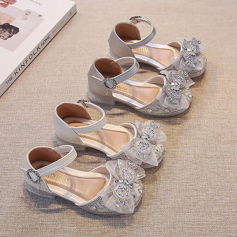 These beautiful girls' sandals are perfect for summer, combining elegance with comfort. Featuring a closed-toe design adorned with sparkling crystals and a charming bow, they offer a princess-like look ideal for special occasions. The soft rubber sole ensures all-day comfort, making these sandals a delightful blend of style and practicality for young fashionistas.