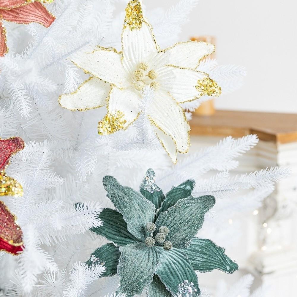 Faux Velvet Artificial Christmas Flower with Glitter 26cm Christmas Tree Wreath Vibrant Color DIY Poinsettia Flower Decor