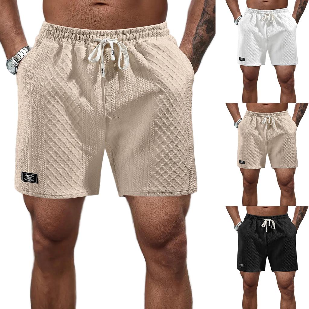 Shorts For Mens Cozy Texture Embroidered Casual Stretch Elastic Waist Shorts With Pockets