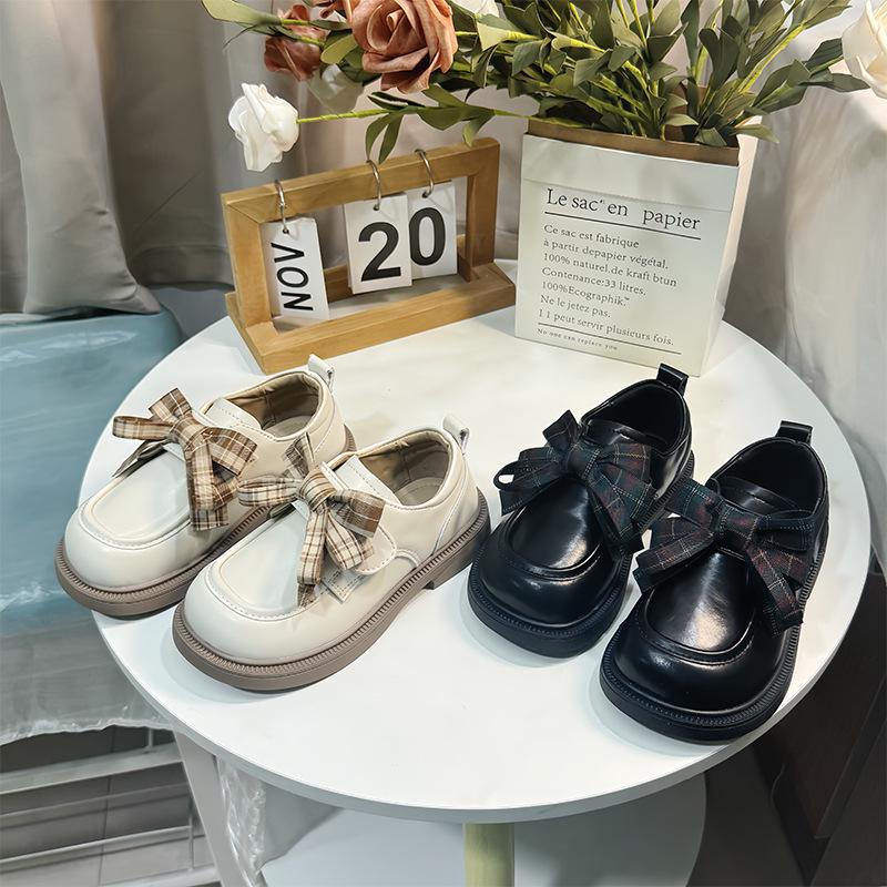 Step into style with these charming loafers designed for girls who love to express their fashion sense. Featuring a chic plaid bow and crafted from high-quality leather, these shoes offer both elegance and comfort for your little princess. The rubber sole ensures a secure, slip-resistant grip, making them perfect for both play and occasions. Ideal for adding a touch of Korean-inspired flair to any outfit, these loafers are a must-have for any young fashionista's wardrobe.
