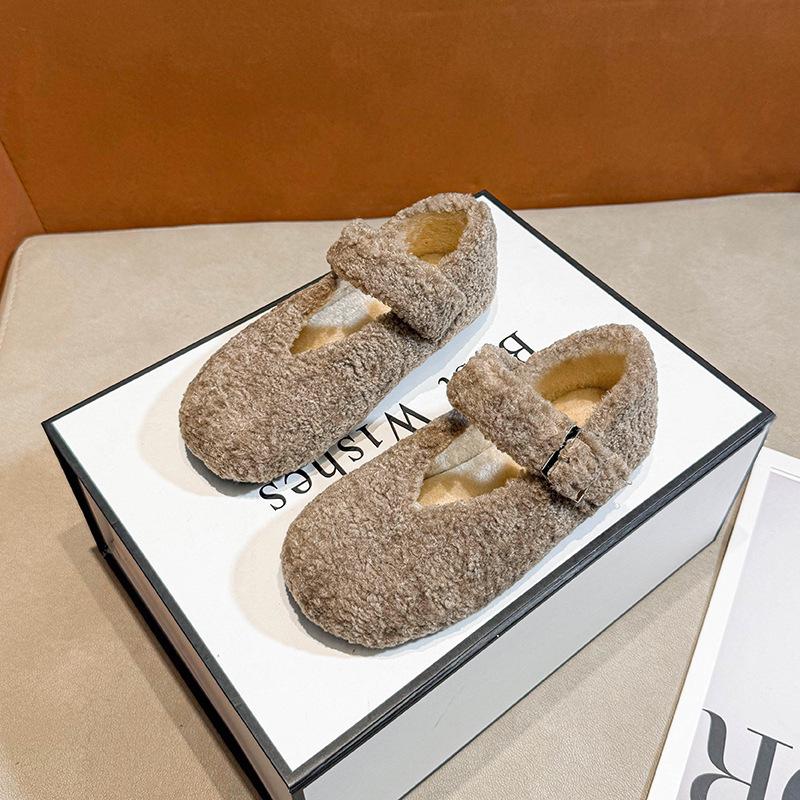 Girls' Soft-Soled Lamb Wool Outdoor Driving Shoes, Autumn/Winter 2025, with Fleece Cotton Lining, Versatile and Warm.